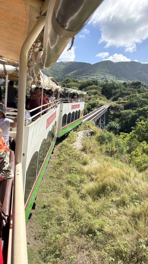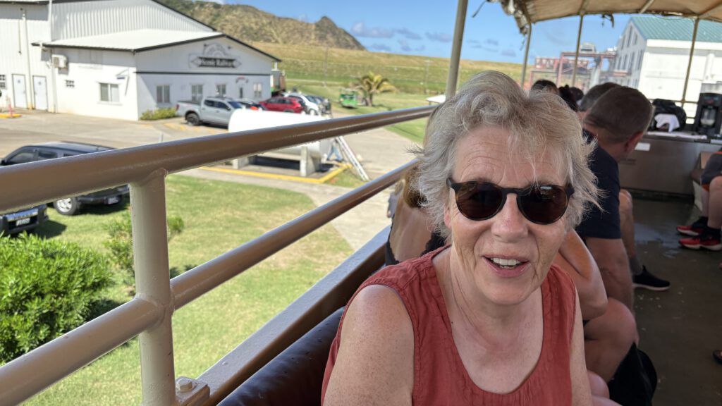 Weiter ging es am Abend Richtung Basseterre, der Hauptstadt von St. Kitts und Nevis auf den Kleinen Antillen. Hier machten wir einen Ausflug mit der 1912 erbauten ehemaligen Zuckerrohrbahn. Die St. Kitts Scenic Railway ist eine 29 km lange Schmalspurbahn entlang der Küste der Karibik-Insel St. Kitts mit einer Spurweite von 762 mm – eine sehr wackelige Angelegenheit. Immerhin gab es einen Rum-Cola zur Beruhigung!